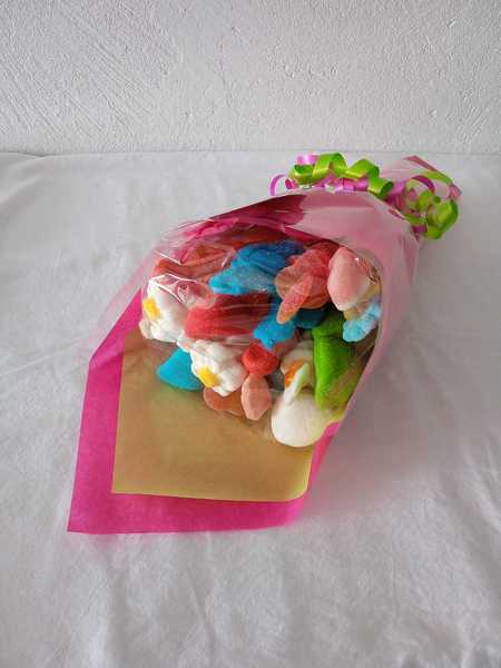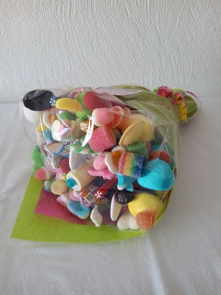 Les bouquets sont réalisés avec un mélange varié de bonbons mais peuvent également être fait avec des bonbons en particulier ou aux couleurs que vous préférez.