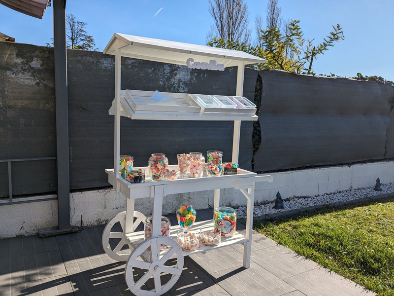 formule : Charrette : 40€ + 15 bonbonnières : 34€ + Bonbons* (8kg800) :