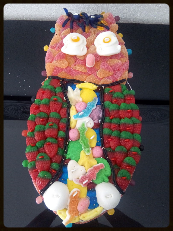 +/- 200 bonbons : mûre noire, oeuf au plat, gros dragibus...