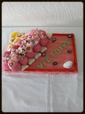 +/- 70 bonbons : disque azyme, minnie en sucre, coeur rose...