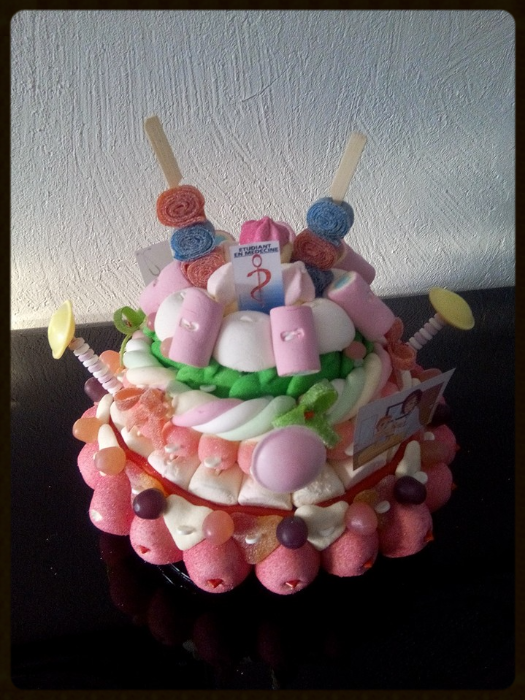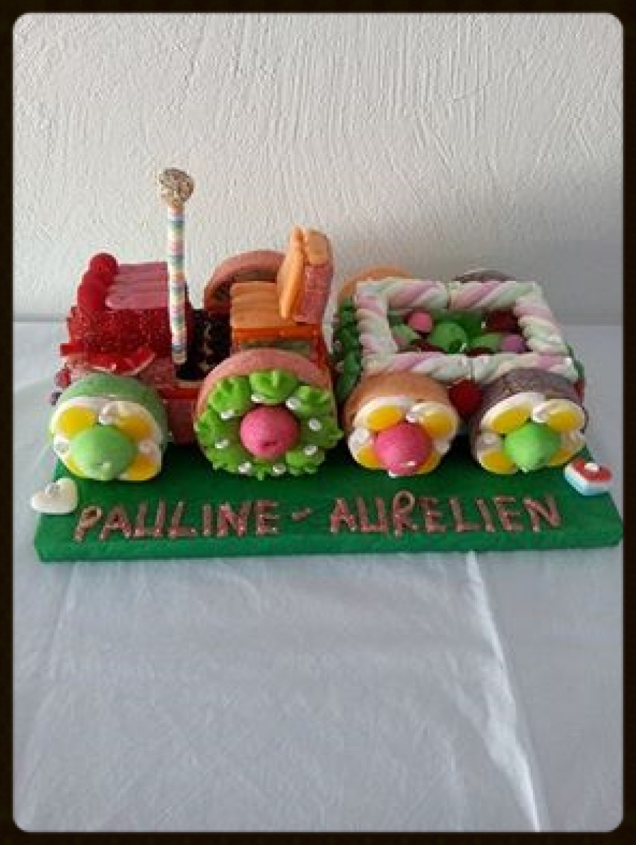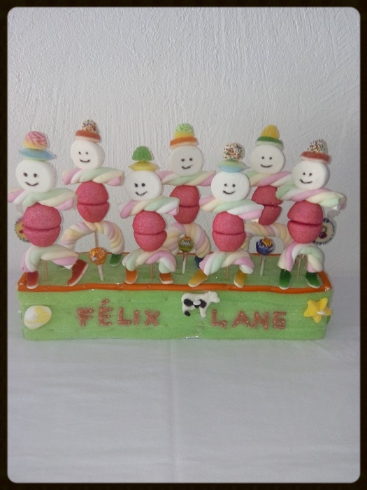 +/- 80 bonbons : gros dragibus, frite, scoubidou, tagada...
