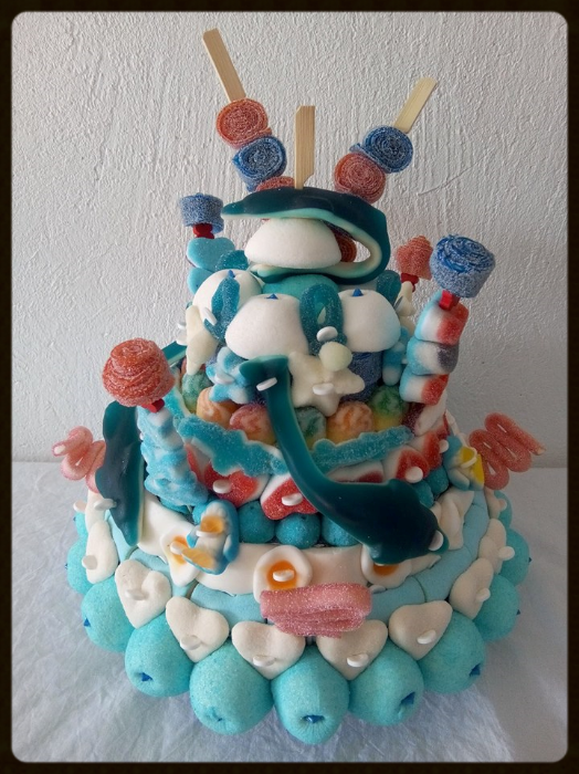 +/- 330 bonbons : crocodile, cocobat, tortue, gros dragibus, étoile, schtroumpf, chaussure, balle de golf verte...