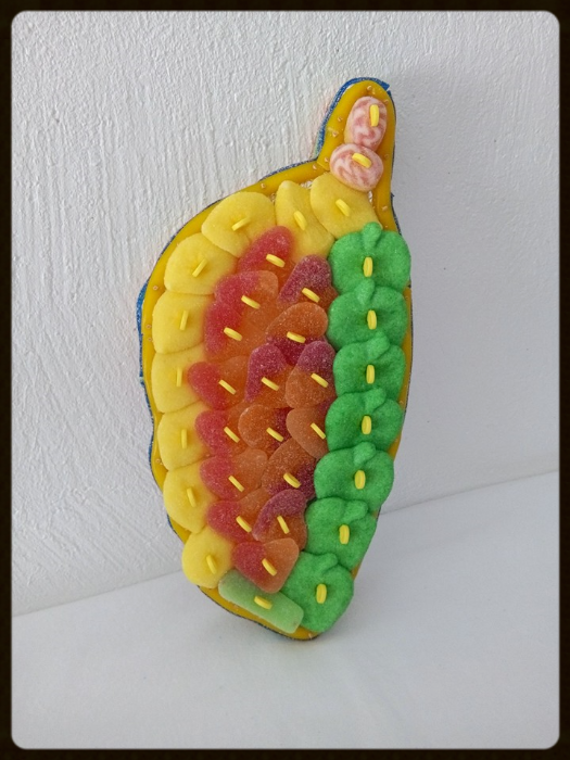 +/- 50 bonbons : coeur orange, doigt, pomme, citron, churritos...