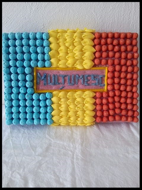 +/- 150 bonbons : oeuf au plat, bandeau rouge, étoile twist bleu...