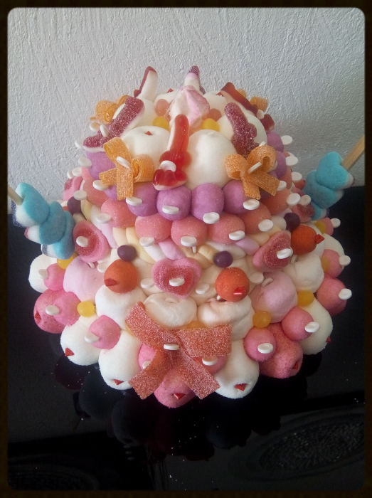 +/- 150 bonbons : soucoupe, tagada pink, coeur 3 couleurs, chamallow torsadé, big oeuf...