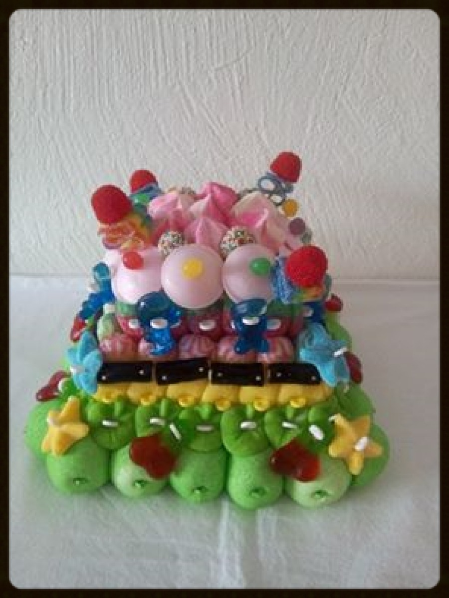 +/- 180 bonbons : cerise lisse, schtroumpfs, cupcake, fraise pik, cocobat...